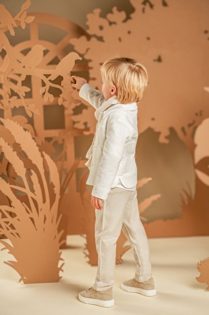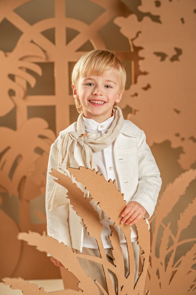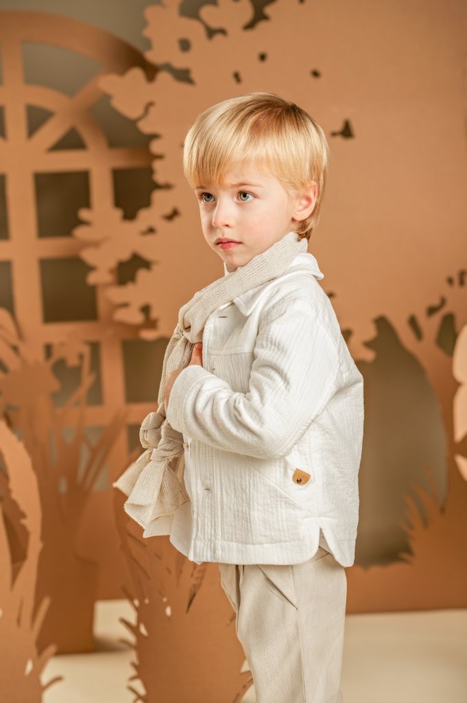 Ένα σύνολο φωτεινό και μοναδικό για ξεχωριστές εμφανίσεις. Το σετ περιλαμβάνει παντελόνι από τtwill Tencel-cotton-linen ύφασμα σε μπεζ αποχρώσεις και μπουφανάκι με γιακά και εξωτερικές τσέπες από γκοφρέ βαμβακερό ύφασμα σε off white χρώμα. Το λευκό βαμβακερό πουκάμισο με τον ιδιαίτερο Mao γιακά ολοκληρώνει χρωματικά το look, ενώ το μακρόστενο υφαντό φουλάρι σε μπεζ αποχρώσεις προσθέτει μια διακριτική, ξεχωριστή πινελιά. Για την τελική λεπτομέρεια, επιλέξτε ανάμεσα σε ψάθινο καπέλο ή υφασμάτινη τραγιάσκα, σύμφωνα με το προσωπικό σας στυλ.