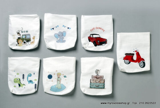 Μπομπονιέρα Βάπτισης Υφασμάτινο Πουγκί με ψηφιακή θεματική εκτύπωση bell-166 Υπάρχει η δυνατότητα αλλαγής του χρώματος και σχεδίου και εκτύπωσης του ονόματος Κατασκευάζονται κατά παραγγελία και απαιτούνται minimoum 15 ημέρες παράδοσης 1. Η τιμή αφορά σκέτο το αντικείμενο (χωρίς δέσιμο – κουφέτα – κορδέλες) και είναι τιμή τεμαχίου 3. minimoum 40 ΤΕΜ.